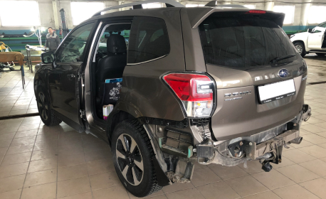 Субару - ремонт задней левой двери, заднего бампера.